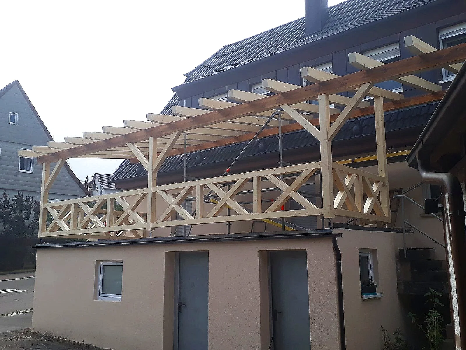/ Carport And Pergola Builder : Townsville Carport Builder L Verandahs L Pergolas L Carports : This cypress timber framed carport, tucked in next to the existing garage, creates additional covered space and highlights the beautiful landscape.